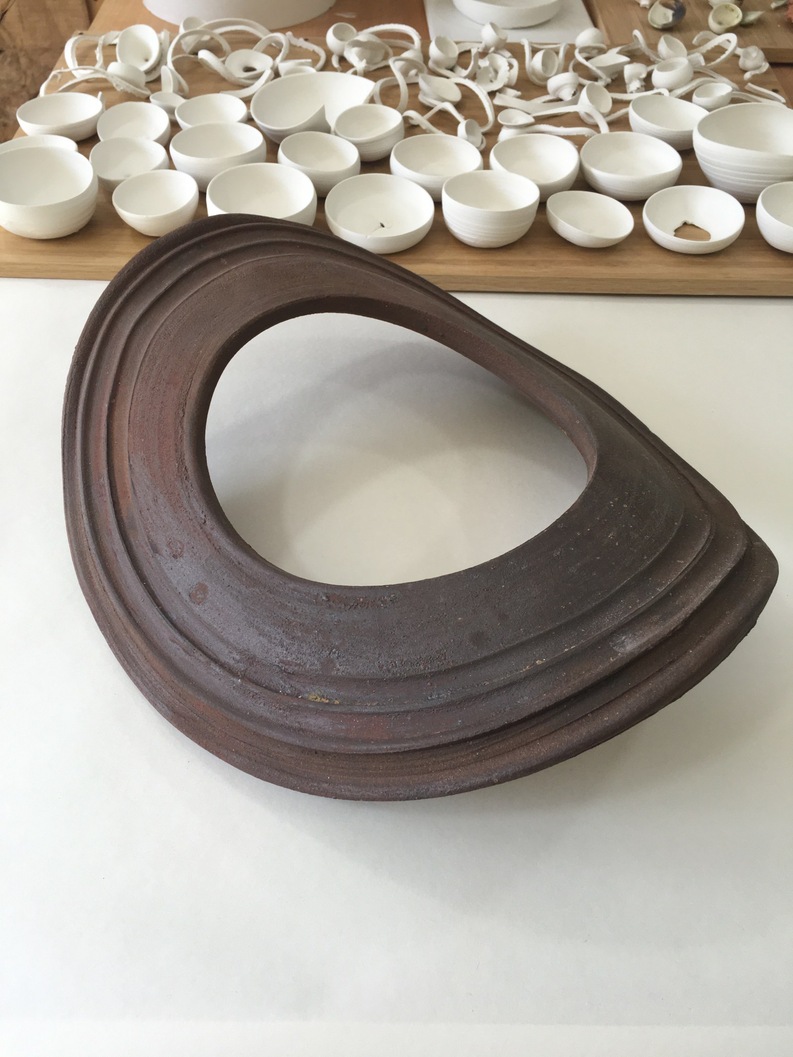 I think a lot about the visual elements of maps and how they illustrate the physical landscape. Shapes created by throwing remind me of contours and the concept of wayfinding here being that you seek your own path.