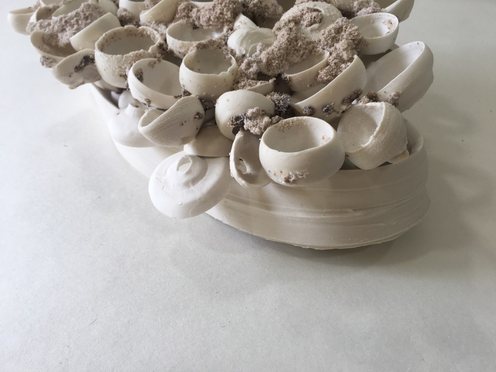 I think Cluster suits the appearance of this piece. The kiln sand clinging to the tiny bowls is quite marine-like.